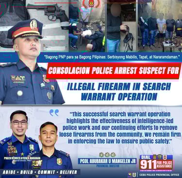 CONSOLACION POLICE ARREST SUSPECT FOR ILLEGAL FIREARM IN SEARCH WARRANT OPERATION